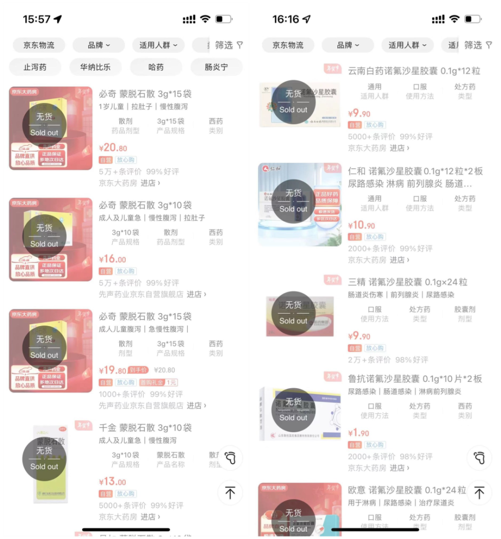 几乎在一夜之间,蒙脱石散、诺氟沙星全都脱销了。