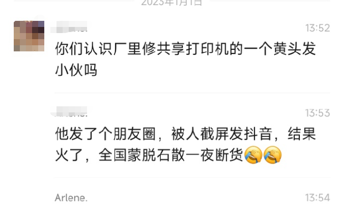 兄弟姐妹们。2023年第一件大离谱事件来了,一个修打印机的黄头发小伙带动了全国的蒙脱石散销量,让医学行业博主们都破防了。