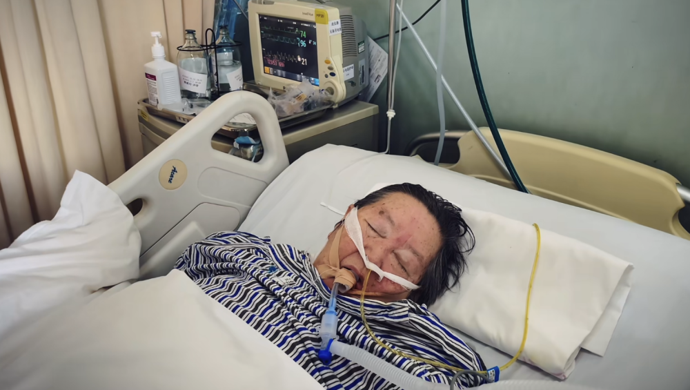 照片中,火风母亲躺在病床上神志不清,口中与鼻腔都插着管子,从一旁的检测仪器可以看出,在医院的全力救治下,火风母亲的病情总算趋于平稳,心率等指标也逐步恢复正常。